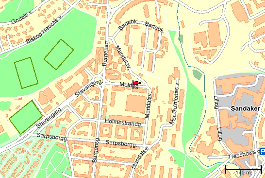 Enten du kommer vestfra eller østfra, kommer du til en stor rund- kjøring hvor Stavangergt. og Bergensgt. går over i Moldegt.