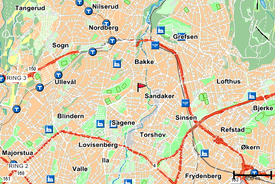 Østfra på ring 3, kan du ta av ved Storo eller neste avkjørset og kjøre ned Maridalsv.
